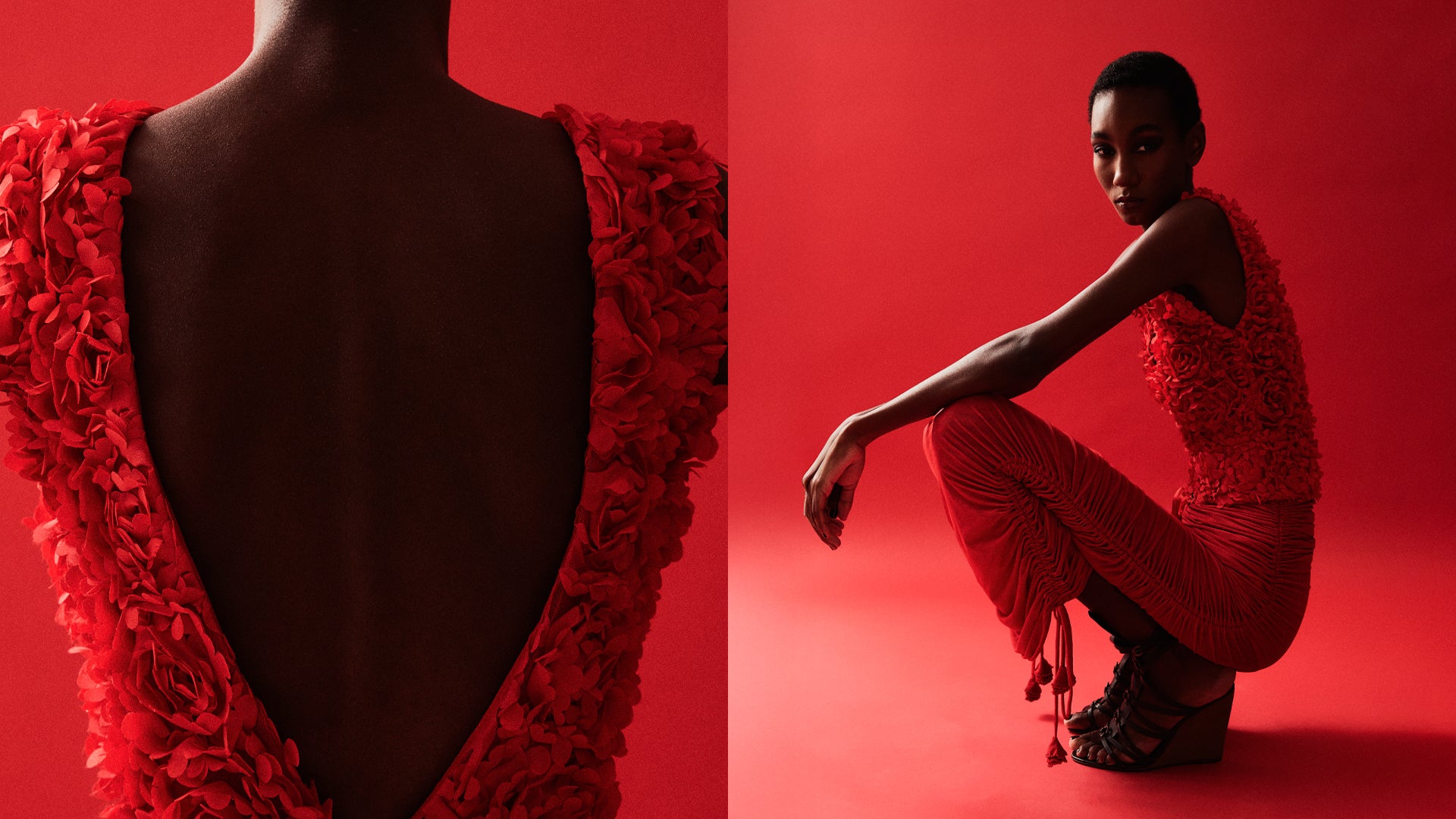 Vestido Lastex Floraison Vermelho Collab Vanessa Abbud